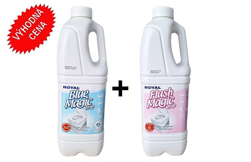 Praktická a cenově výhodná sada přípravků pro kompletní péči o chemické WC v karavanu, obytném voze, kempu nebo na chatě. Kombinace Blue Magic TRIP 2 l (do odpadní nádrže) a Flush Magic TRIP 2 l (do splachovací nádrže) zajistí maximální hygienu, eliminaci zápachu a bezproblémový provoz vaší toalety.
