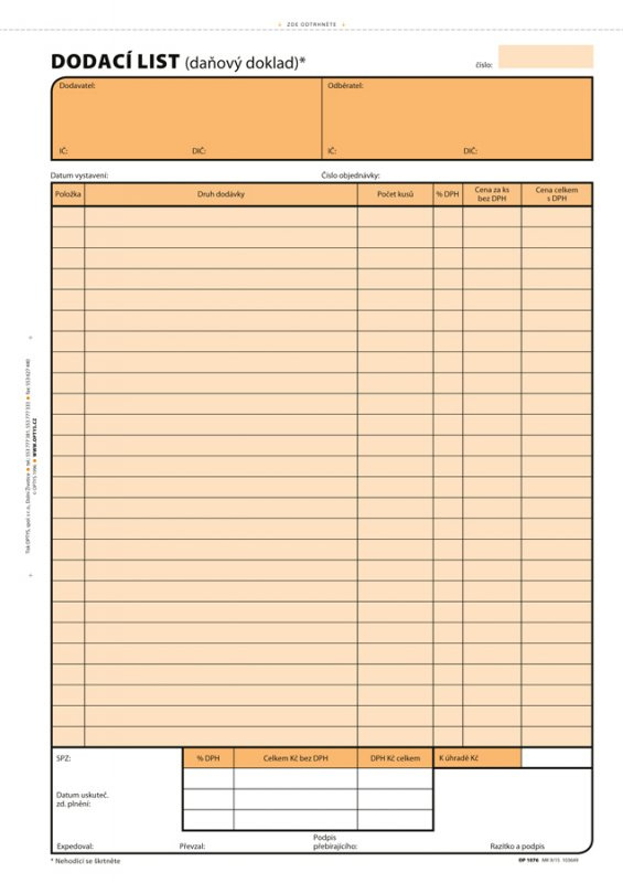 Listy odtržitelné perforací, se zakládacím děrováním, perforace v levé části tiskopisu.