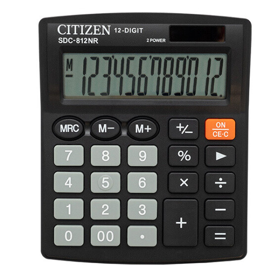 Citizen Kalkulačka SDC812NR, černá, stolní, dvanáctimístná, duální napájení