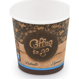 Odolný materiál: Vyrobený z kvalitního papíru s vnitřním PE nástřikem, který zajišťuje, že kelímek neproteče a udrží nápoj horký, aniž by pálil v ruce.