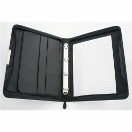 Konferenční desky z černé syntetické kůže uzavíratelné na zip Obsahují poutka na psací potřeby a rů