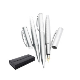 materiál kov, matně stříbrná barva tělíčka, kuličkové pero, roller, plnicí pero, dárková krabička