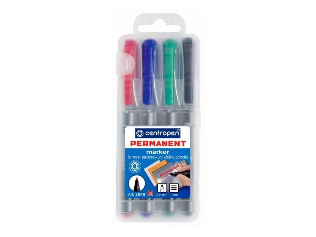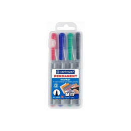 vhodný k popisování plastických hmot, skla, filmů, apod., inkoust na alkoholové bázi, válcový hrot, stopa 1mm, sada 4 kusů