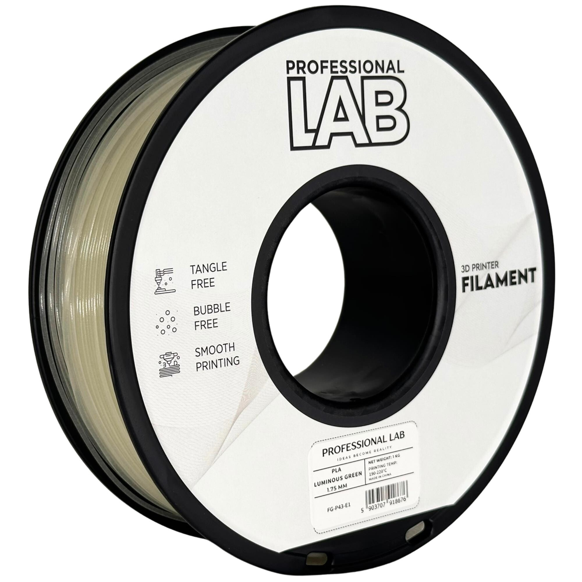 Filament Professional Lab PLA Luminous Green je vysoce kvalitní materiál pro 3D tisk, který přináší efekt svícení ve tmě. Po krátkém naosvětlení světlem UV, LED nebo slunečním začne model vydávat intenzivní zelený zářivý lesk, díky čemuž se stává dokonalým materiálem pro tvorbu dekorací, uměleckých projektů, edukativních modelů i originálních doplňků, které mají být viditelné i v noci.