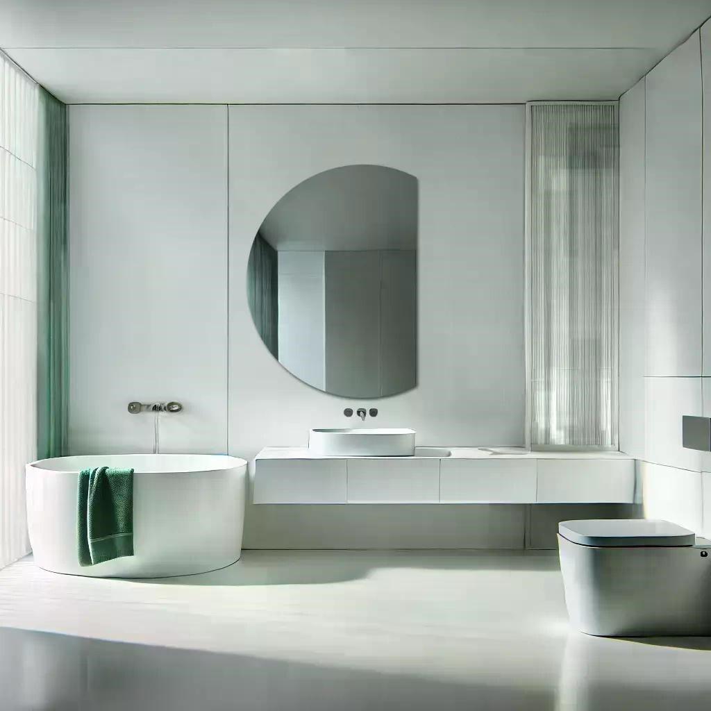 koupelnové zrcadlo bez osvětlení, zrcadlo půlkulaté, zrcadlo na zakázku, zrcadlo se spodním ořezem, moderní koupelnové zrcadlo, zrcadlo bez rámu, bezpečné zrcadlo, designové zrcadlo, zrcadlo AGC.